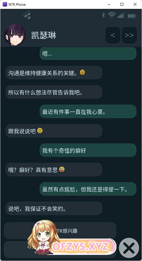 通过本应用与各类女孩聊天互动,体验多种结局路线,包括NTR(寝取)、NTS(寝取され)等多样化情节。