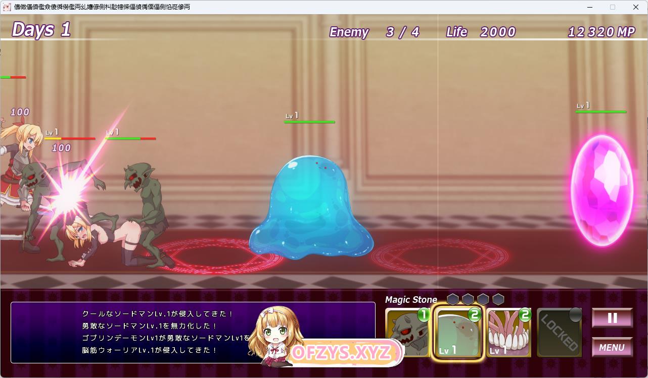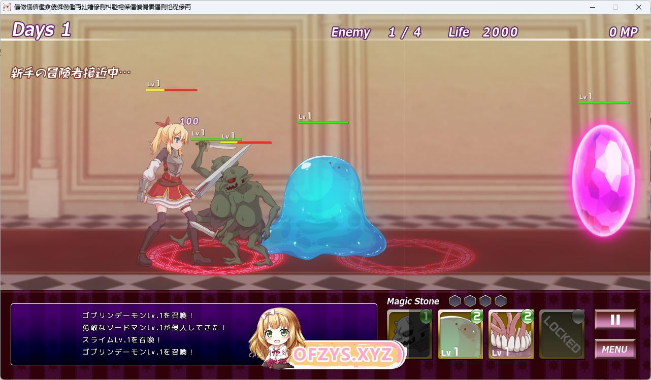 玩家方负责操纵怪物(使魔),迎击袭来的女孩子(冒险者)
