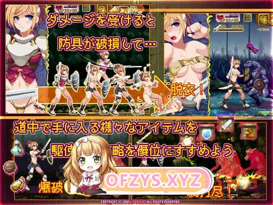 若在战斗中被击败,将被怪物带回巢穴,并触发凌○题材的像素动画エロ场景。