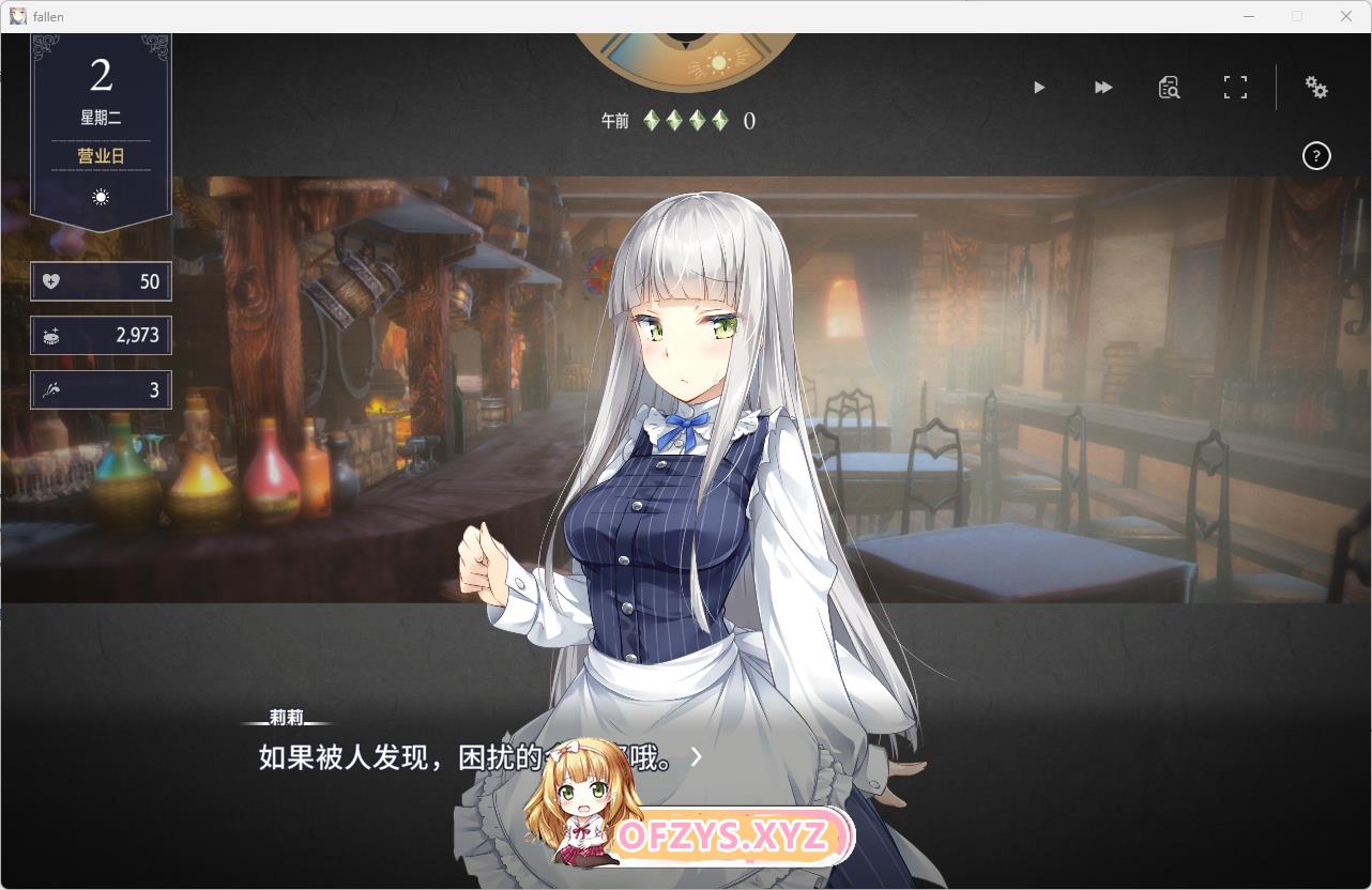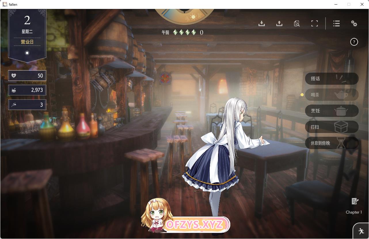 您能在酒馆的店内或寝室和女主角进行互动与交流。