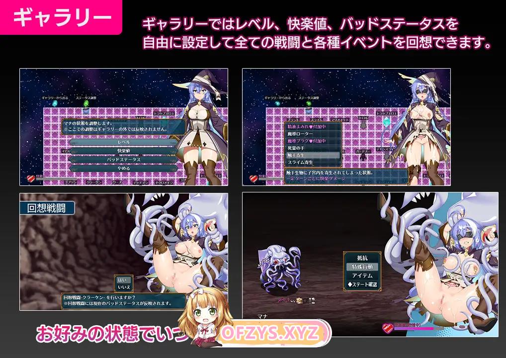 通过菜单界面选择的「画廊」功能,可自由调整异常状态和快感槽参数,重温与魔物的战斗、情色陷阱及败北事件。